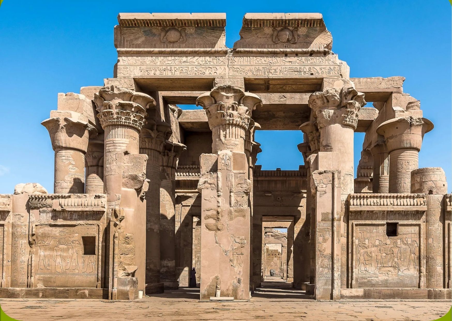 Pensión Completa a bordo. Llegada a Kom Ombo. Salida para visitar los templos simétricos del dios Sobek y del dios Horus, situados sobre la misma orilla del Nilo. Navegación hacia Edfu, después de un emocionante paseo en calesa, llegada al Templo del dios Horus de Edfú, uno de los templos mejor conservados de todo Egipto. Regreso al barco, la navegación continúa hacia Luxor. Alojamiento a bordo.