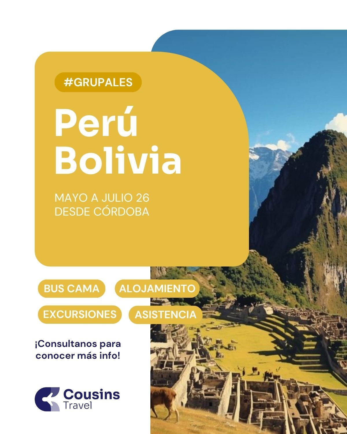 * Traslados, visitas y excursiones según itinerario: Tilcara y Purmamarca + Salar de Uyuni (diurna y nocturna) + Navegación Islas de los Uros + City Tour en Cusco y ruinas aledañas + Valle Sagrado de los Incas + Machu Picchu en tren (no incluye entrada) + Copacabana, Tiwanaku y La Paz